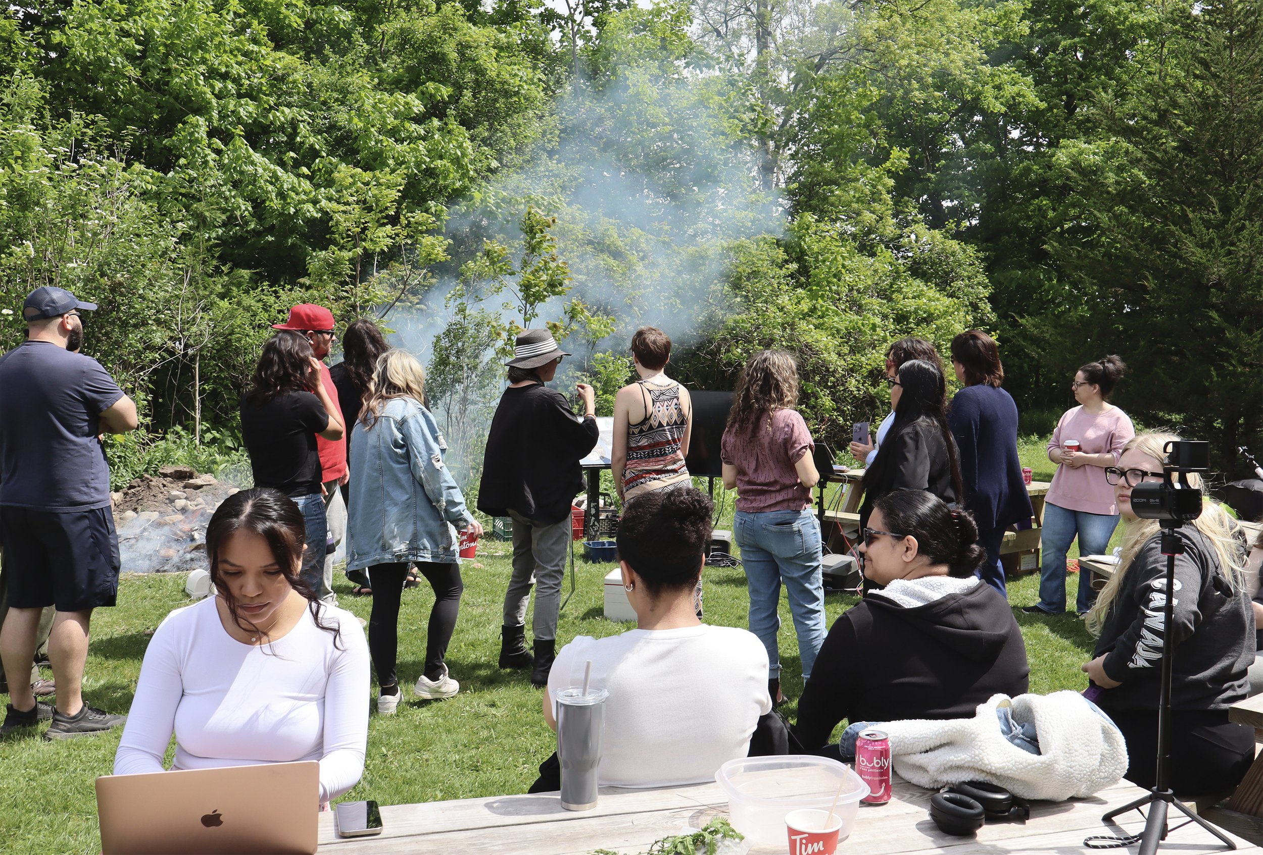 Image (above) Various Artists and Community Members participating in a Pit Fire at the Museum of Ontario Archaeology (the Lawson Site) as part of